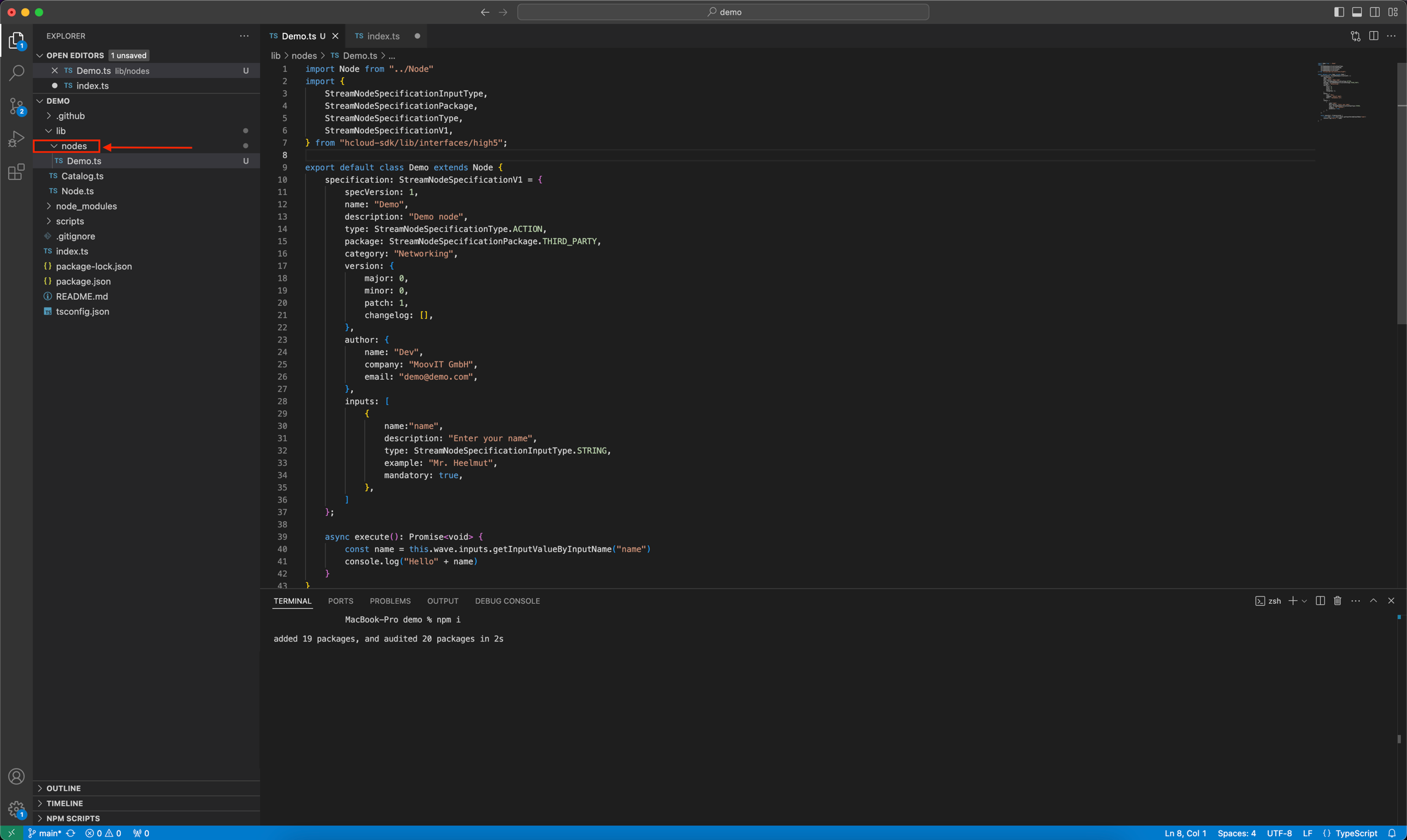 Once that’s done, navigate to the "lib" folder, expand the "nodes" folder, and create your first