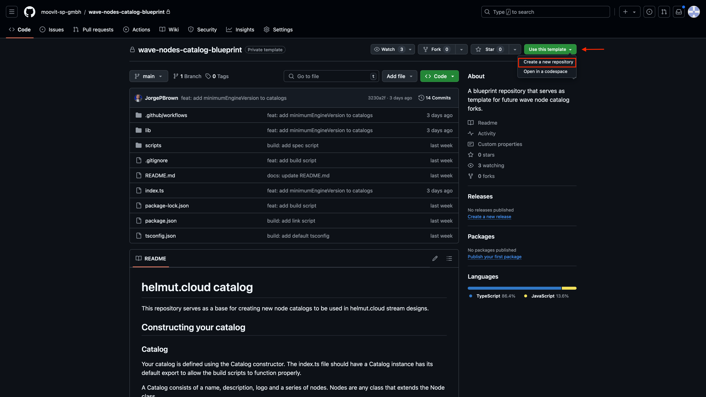 1. Create a new repo from the wave-node-catalog-blueprint template: