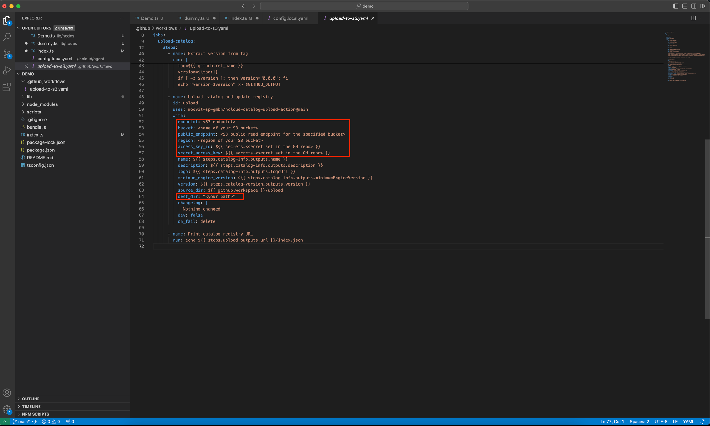The repo comes pre-configured with a GitHub Action that automates building and publishing your node catalog to S3 storage. You'll just need to configure a few properties: