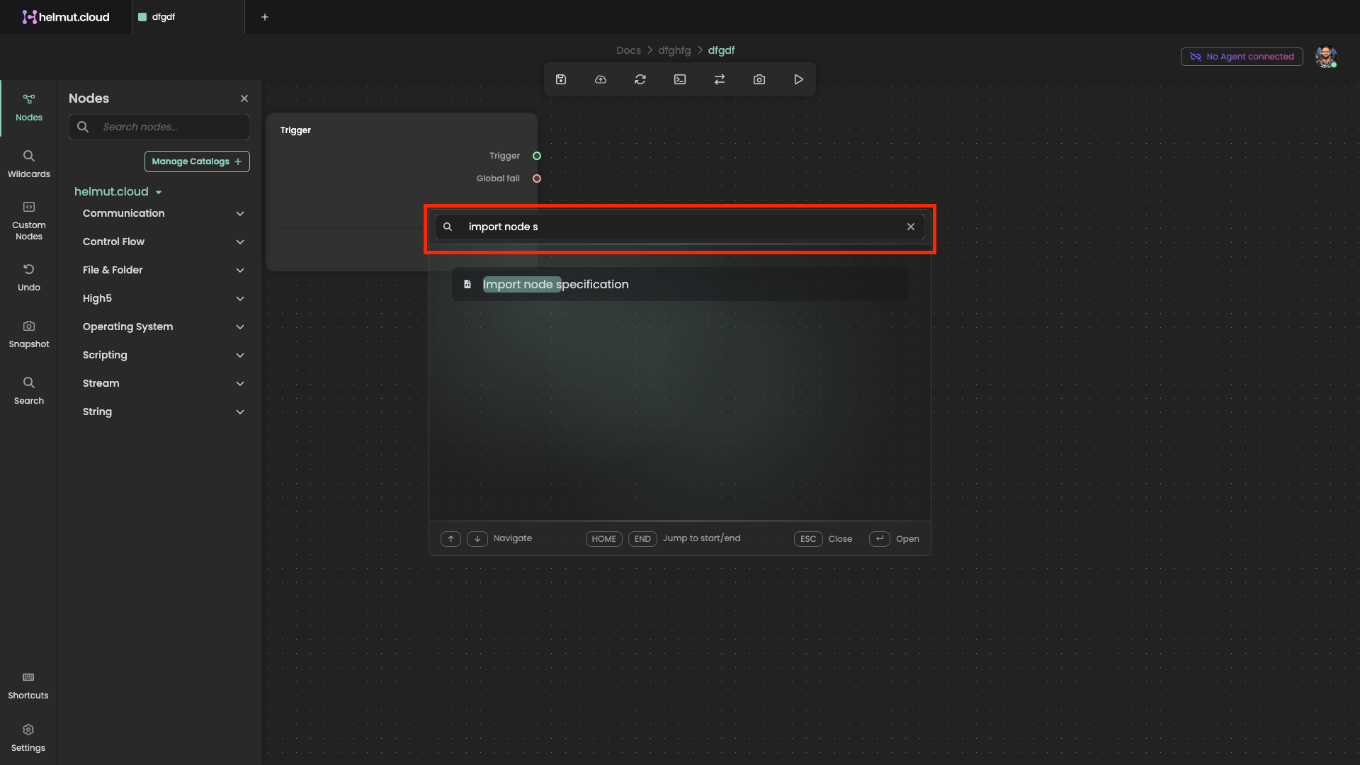 Ctrl + K(Windows) orCmd + K(Mac) to bring up the command palette. Type ‘Import node specification’ into the search bar, select the option, and pressReturnto open it.
